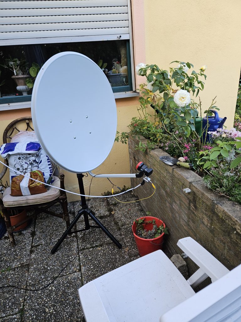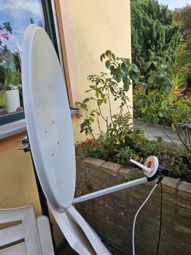 Es hat eine Weile gedauert, bis ich mit dem 80cm Spiegel und einem Bullseye LNB den QO-100 gefunden habe.